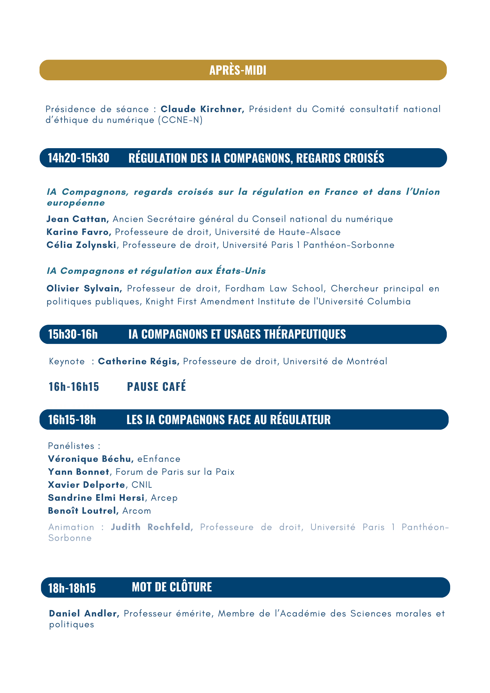 * Les IA compagnons face au régulateur - Benoît Loutrel, Xavier Delporte, Sandrine Elmi Hersi, Véronique Béchu, Yann Bonnet, Animation : Judith Rochfeld