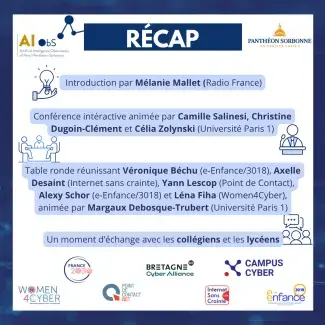 À l’occasion du mois européen de la cybersécurité, l’Observatoire de l’Intelligence artificielle de l’Université Paris 1 Panthéon-Sorbonne, en collaboration avec le Campus Cyber, les associations Point de Contact, Internet Sans Crainte (TRALALERE), Women4Cyber France et e-Enfance / 3018, a organisé une série d’interventions destinées aux collégiens et lycéens, centrées sur les enjeux liés aux deepfakes.